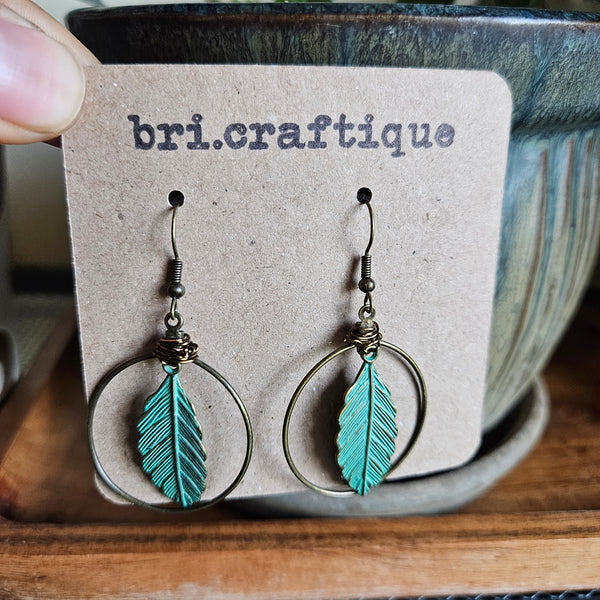 Simple yet stunning hoops, featuring a lightweight patina metal feather. Pairs perfectly with a maxi dress or jeans and a cute top!