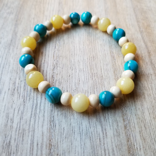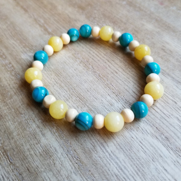 'Go where the wind takes you' with this unique bracelet, fashioned after the nature loving princess, Pocahontas. Featuring yellow quartz, aqua luster shell and wood beads - it is the perfect combo to wear on your next Disney trip or simply tote for everyday wear.