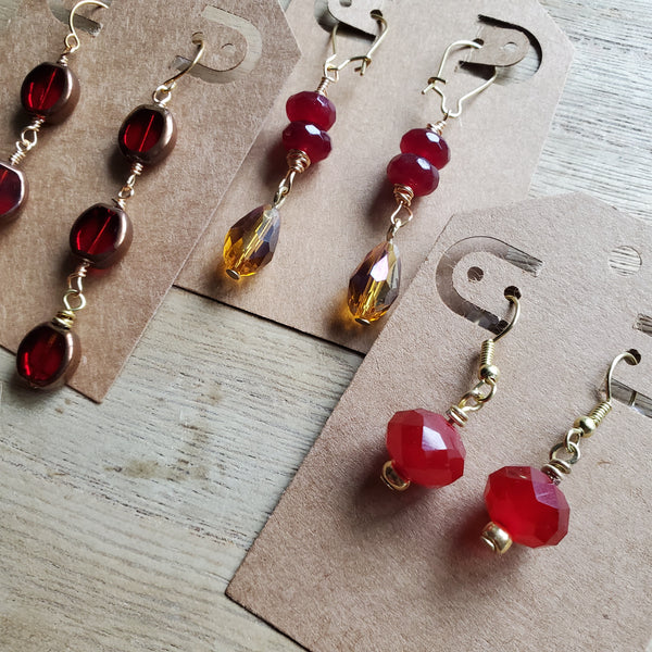 These beauties are made with stunning ruby red glass beads - wire wrapped with gold wire. They are made for date night or a classy night out on the town.