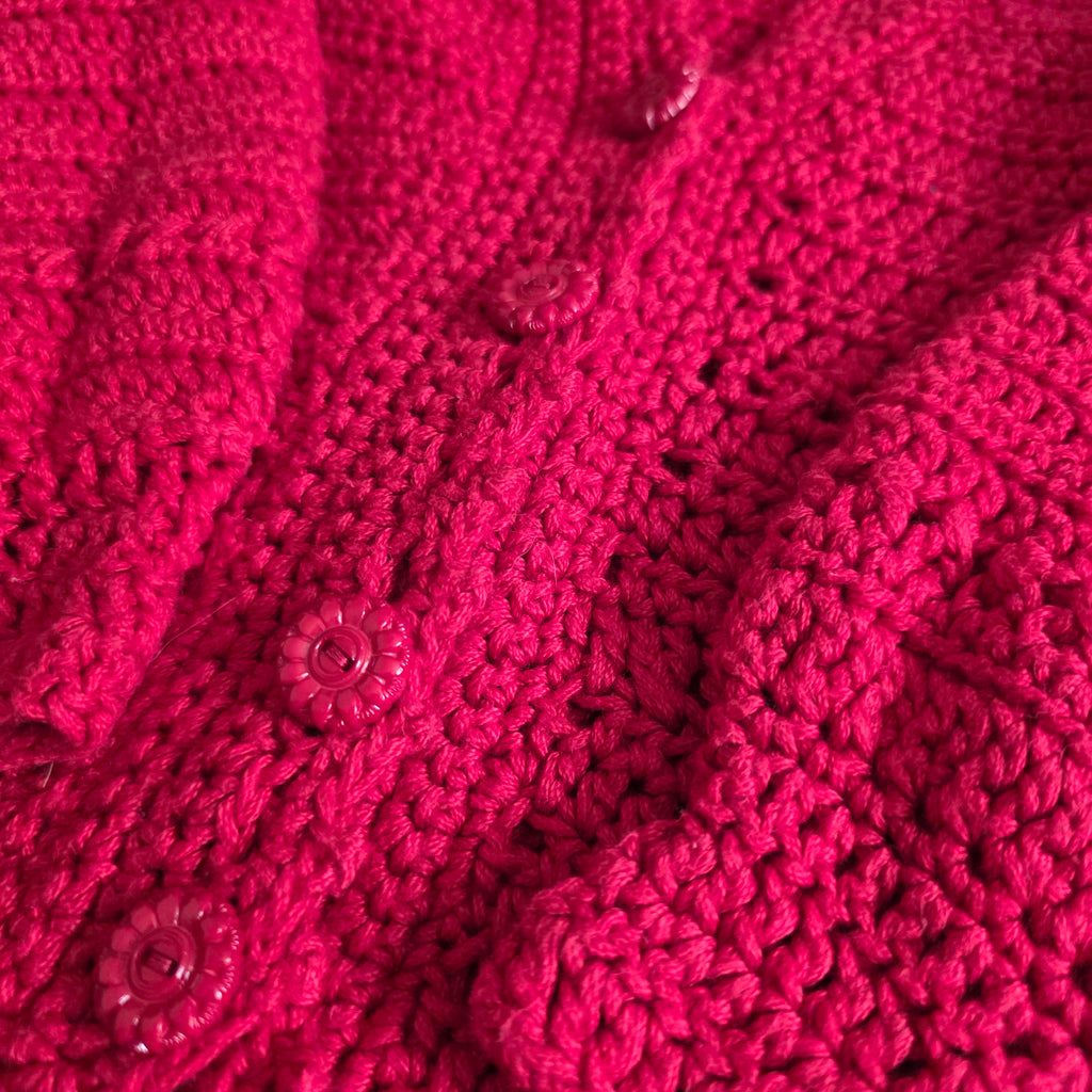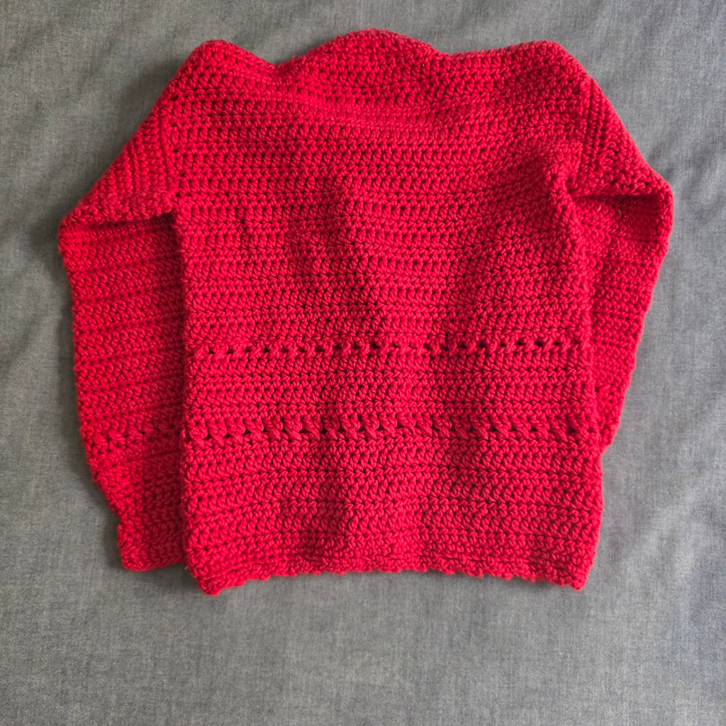 Girl's Red Crochet Sweater with buttons | Handmade (3-4T)