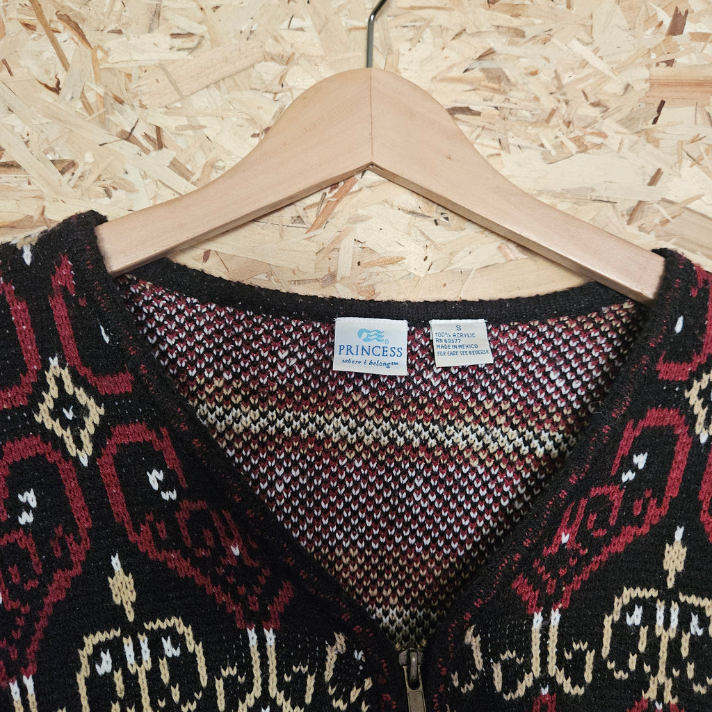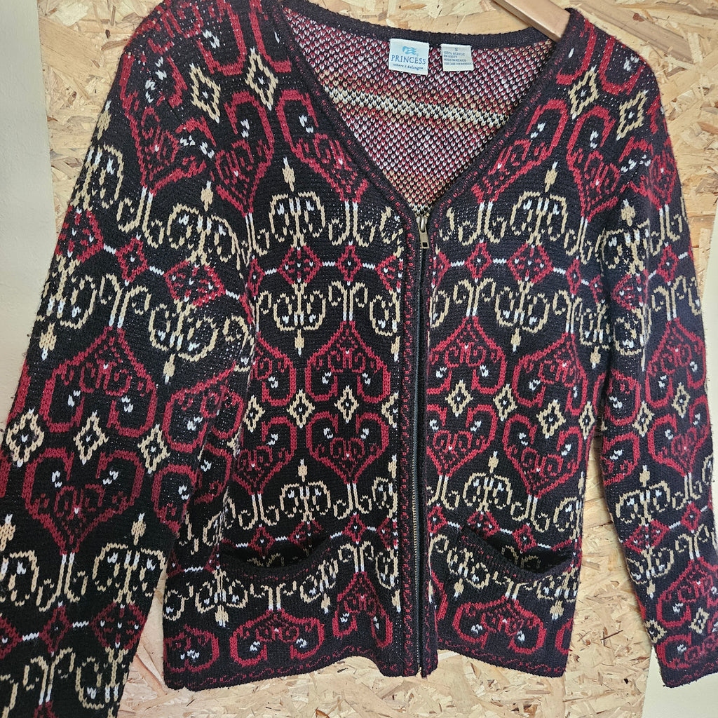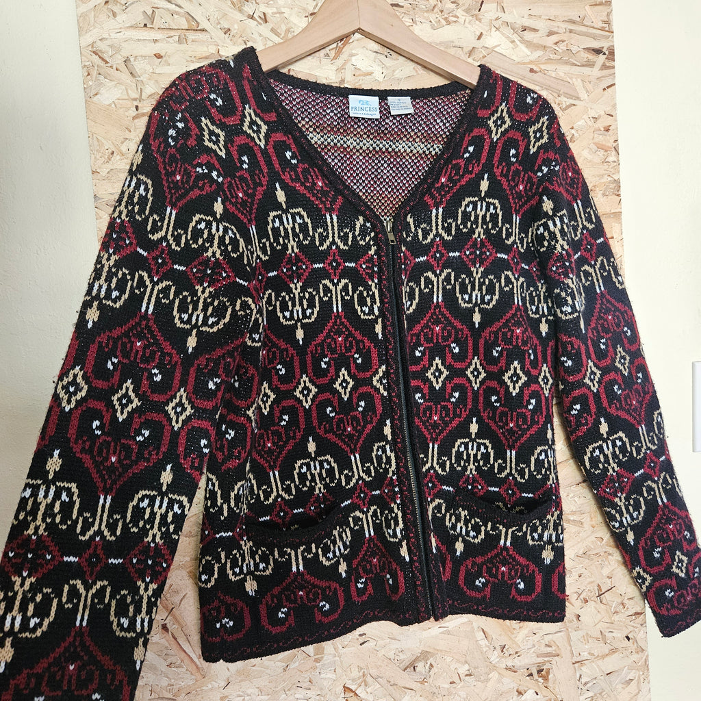 Vintage - Princess Cruises | Black and Pink Hearts Zip Up Sweater (S)
